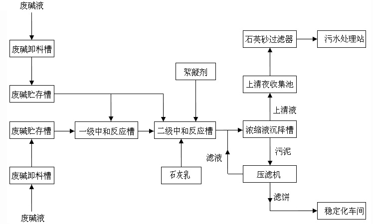 物化處理采用酸堿中和工藝,殘?jiān)M(jìn)入固化車間處理,液體則進(jìn)入廢水處理站繼續(xù)處理。