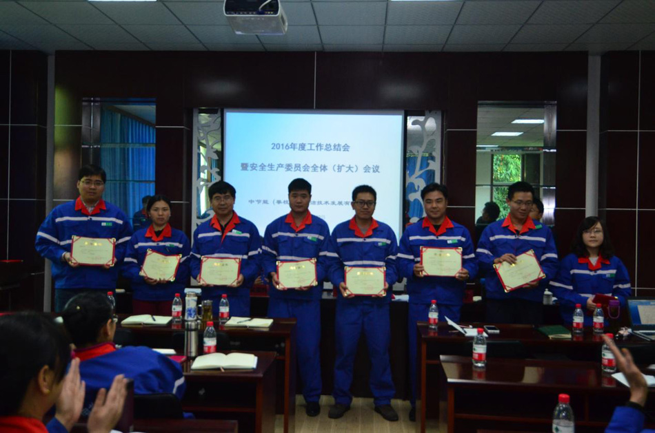 2017年1月22日,中節(jié)能(攀枝花)清潔技術(shù)發(fā)展有限公司召開了2016年度工作總結(jié)會暨安全生產(chǎn)委員會全體擴大會。會議傳達了上級公司關(guān)于安全生產(chǎn)工作的有關(guān)精神,宣貫了“安全九條禁令”和關(guān)于安全、環(huán)保刑事犯罪“兩高”司法解釋。各部門負責人分別與公司簽訂了《2017年安全環(huán)保目標責任書》,中層以上管理人員及核心崗位人員分別與公司簽訂了《廉潔從業(yè)責任書》。會議宣讀了中國環(huán)境保護集團公司、中節(jié)能清潔技術(shù)發(fā)展有限公司關(guān)于表彰2016年度先進集體和先進個人的決定,宣讀了攀枝花公司表彰2016年度先進個人決定,對獲得表彰的先進班組和先進個人頒發(fā)了榮譽證書。