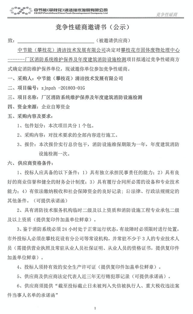 廠區(qū)消防系統(tǒng)維護(hù)保養(yǎng)及年度建筑消防設(shè)施檢測項(xiàng)目競爭性磋商邀請(qǐng)書(公示)
