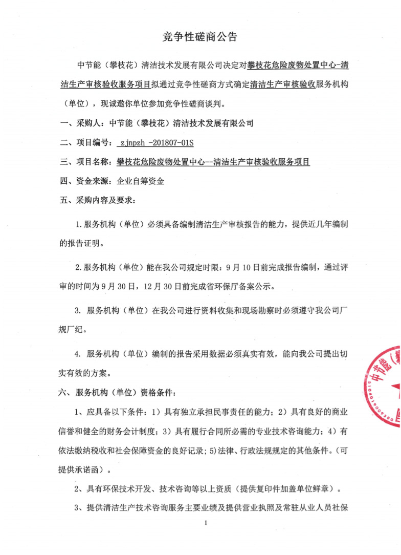 清潔生產(chǎn)審核驗(yàn)收服務(wù)項(xiàng)目——競(jìng)爭(zhēng)性磋商公告