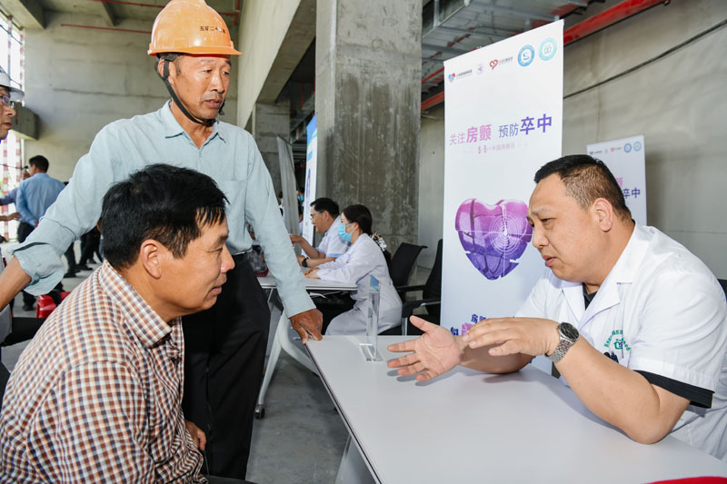 本次活動,由“城芯同筑”黨群服務站精心策劃,周密安排。宿遷市第一人民醫(yī)院內(nèi)科黨總支書記、大內(nèi)科副主任、風濕免疫科主任臧銀耐心解答現(xiàn)場工友的健康疑問,根據(jù)工友的身體情況給予專業(yè)的醫(yī)療建議及指導,得到了現(xiàn)場工友的一致好評?;顒蝇F(xiàn)場以建筑工地常見的意外傷害應急處理為主題開展健康知識講座,生動形象的講解處理意外傷害相關(guān)知識及應急救援措施,同時現(xiàn)場開展全國“愛眼日”及中國“房顫日”等宣傳教育活動。